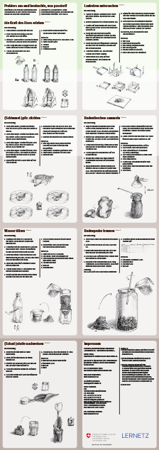 Jede Station vertieft ein klar umrissenes Thema mittels einer Lernsequenz und einem Hörbeitrag. Zudem wird zum Abschluss jeder Lernstation ein themenspezifisches Experiment angeregt. Die Bearbeitung einer Lernstation benötigt je nach Alter und Kenntnisstand der Schülerinnen und Schüler rund zwanzig Minuten. Die Experimente nehmen inklusive Vorbereitung ein bis zwei Lektionen in Anspruch.